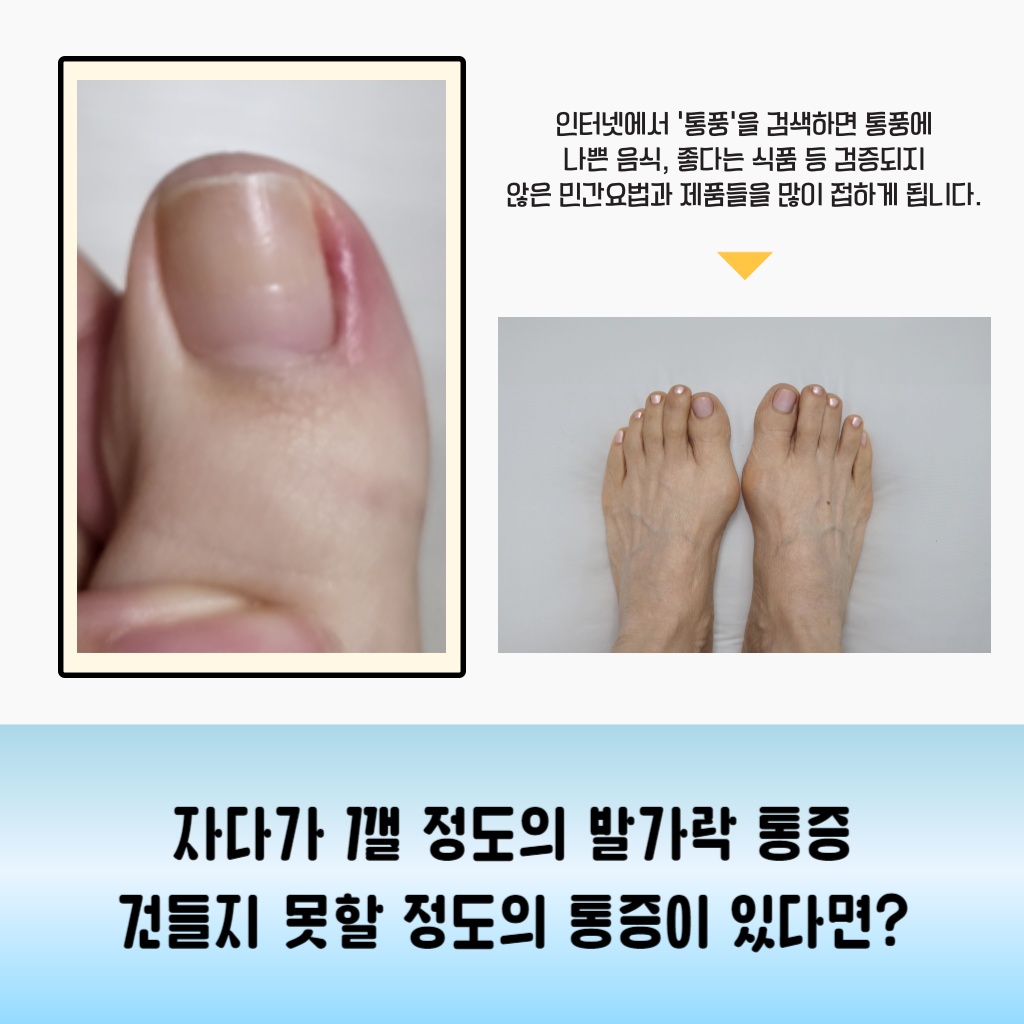 먼저 증상과 병력(언제, 어떻게 아팠는지)을 확인한 뒤 혈액검사로 요산 수치와 염증 수치를 봅니다.